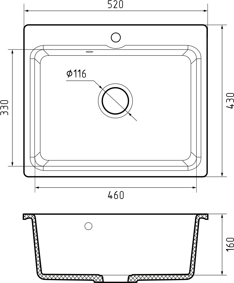 Мойки GRANFEST SMART SM520 (мрамор) 1-чаша 520х430мм ЧЕРНЫЙ (без сифона) GranFest
