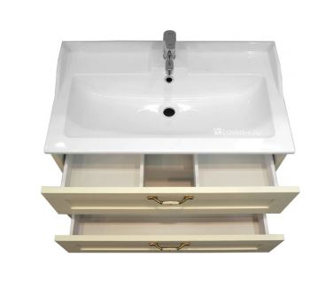 Подвесная тумба под раковину Леон от бренда AQUATON в благородной отделке белый дуб создана для любителей классического дизайна, но при этом предпочитающих современные материалы. Корпус и фасады выполнены из высококачественной МДФ, покрытой матовой пленкой. В тумбе установлены два ящика с системой плавного выдвижения и доводчиками. Классическую эстетику модели подчеркивают изящные ручки в отделке бронза от европейского производителя.