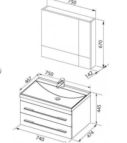 Набор Верона 75 New (Нота new) цв.белый.зеркало камерино (231017) AQUANET