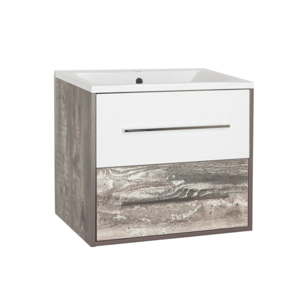 Напольная тумба под раковину Style Line Экзотик придаст интерьеру особую изюминку при помощи стильного сочетания фактур – белый глянец и серый бетон.