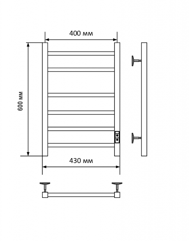 Полотенцесушитель САНПРИЗ КВАДРО П6 400X600 U КС электрический белый Санприз