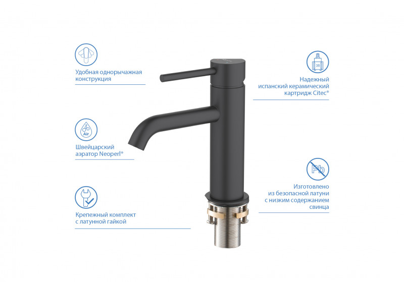 Смеситель для раковины 89, AQ1310MB ЕВРОПА, черный мат, AQUATEK Aquatek