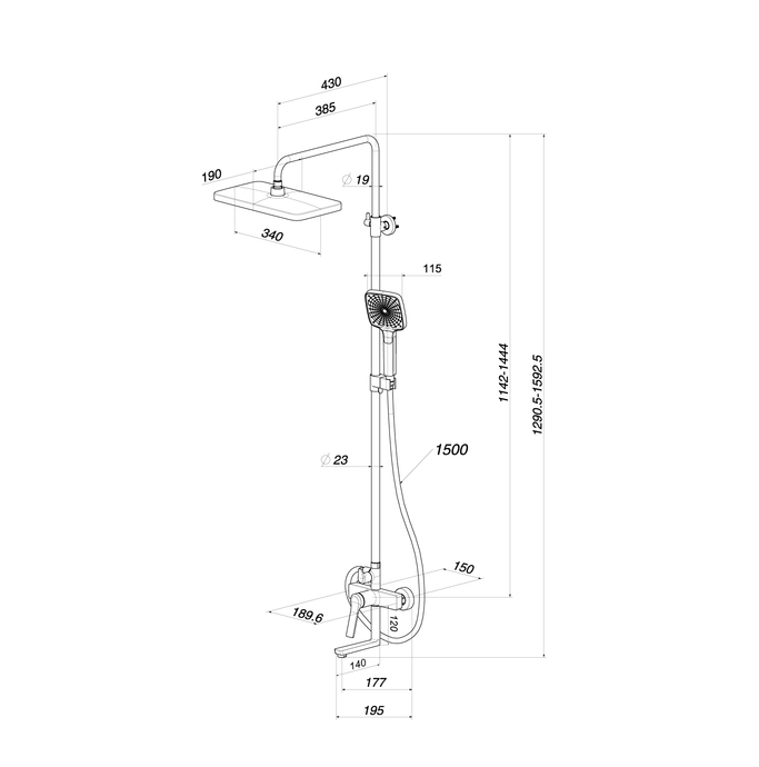 Душевая система с тропическим душем и изливом, матовый черный, Parker, IDDIS, PARBL3Fi06 IDDIS